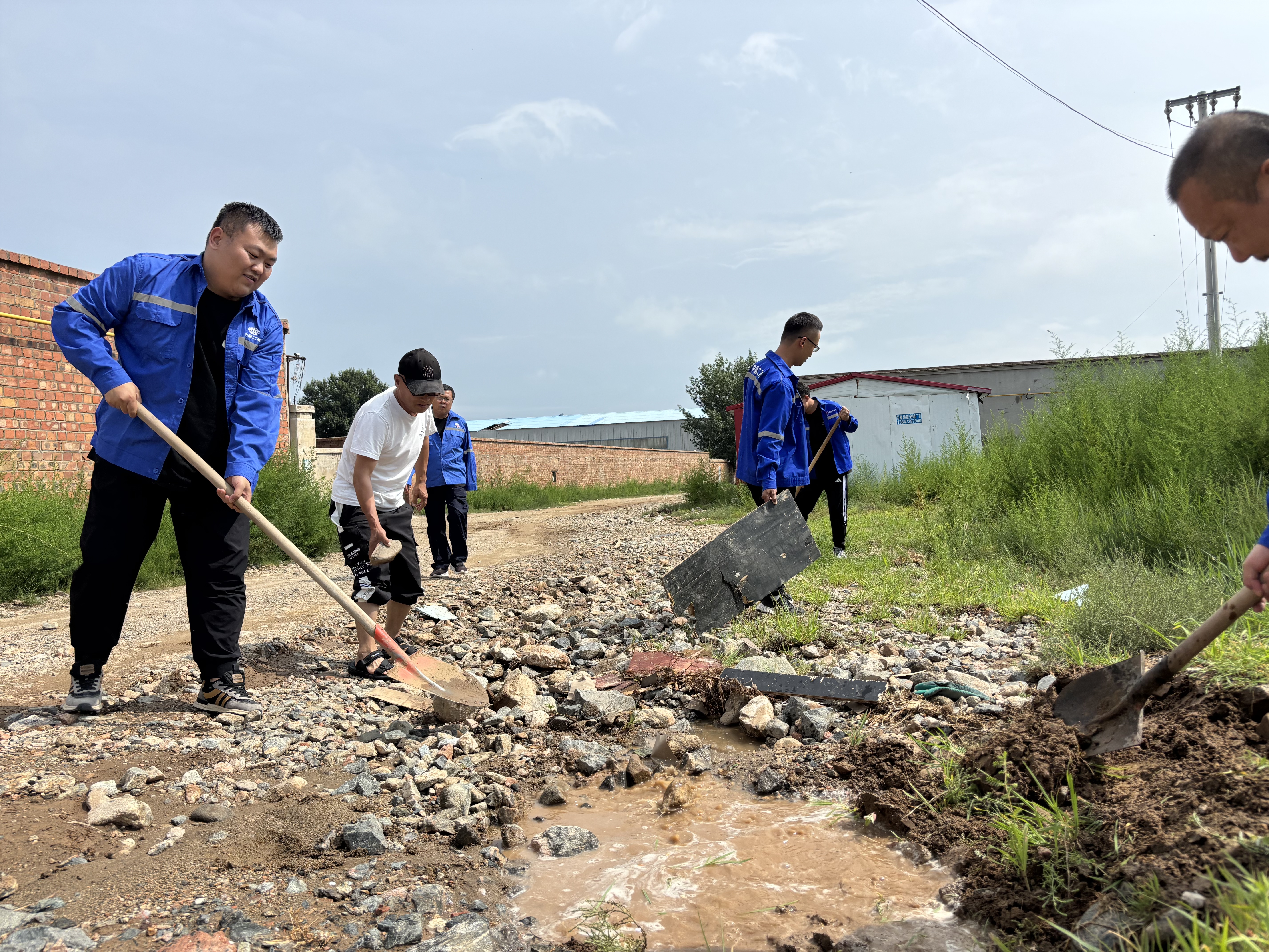 “哪里有危險,哪里就有黨員突擊隊身影”。連日來,面對包頭地區(qū)強降雨,項目部巡查組、黨員突擊隊沖鋒在前,每天派專人檢查項目現(xiàn)場臨時用電、四周道路狀況,發(fā)現(xiàn)險情立即報告防汛領(lǐng)導(dǎo)小組進(jìn)行整改。7月23日凌晨3點,包頭地區(qū)再次狂風(fēng)肆虐、暴雨滂沱,項目部黨員身披雨衣,依舊堅守在一線,對施工現(xiàn)場各危險區(qū)域進(jìn)行巡查,當(dāng)黨員們深入烏蘭計六村時,發(fā)現(xiàn)道路嚴(yán)重破損,影響居民出行,項目部防災(zāi)防汛領(lǐng)導(dǎo)小組立即與周邊居民溝通并獲得支持,組織黨員突擊隊對道路進(jìn)行了全面的修繕工作。從場地平整、模板安裝到混凝土澆筑、路面拉毛,每一道工序都凝聚了項目部的辛勤付出,平坦的道路得到了過路村民的一致好評,烏蘭計六村村委會對項目部的辛勤付出送上了衷心感謝。